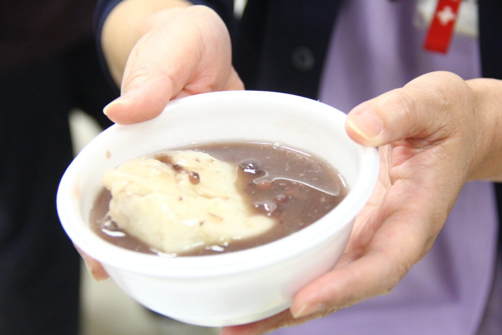 鏡開きにあわせて、栄養部特製のぜんざいが職員に振る舞われました。 温かいぜんざいを囲み、忙しい日常の中でも、職員同士が和やかな時間を共有するひとときとなりました。
