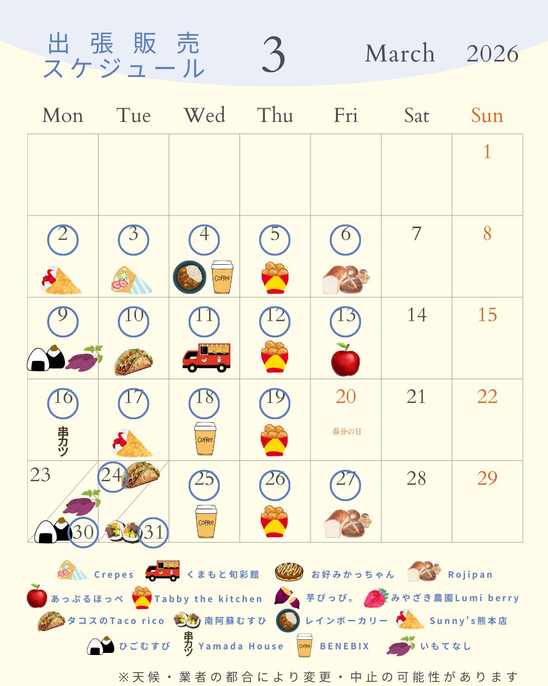 【3月の出張販売スケジュールをお知らせします!】