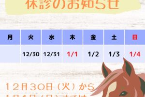 鶴田病院の年末年始休診日は 12月30日(火) から 1月4日(日)までとなります。   ...